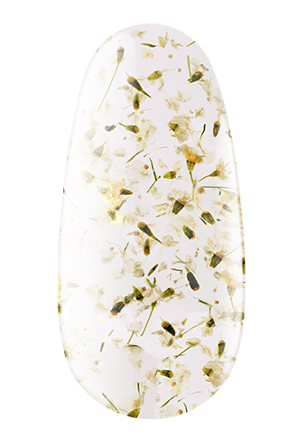 Flower gel – гель для нейл-арта, в текстуре которого присутствуют сухоцветы. Благодаря такому решению этот декоративный материал идеально подходит для создания нежного, изящного, романтического дизайна.