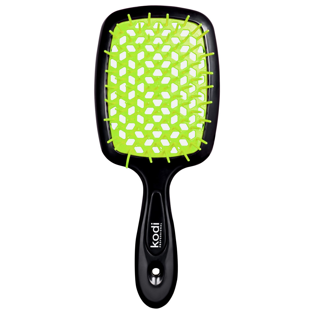 Универсальная модель расчески Soft Touch Hairbrush от популярного бренда Kodi Professional с легкостью превращает обыденный бьюти-ритуал в профессиональную уходовую процедуру. А стильное цветовое решение в виде комбинации черного корпуса с салатовыми вставками сделает аксессуар трендовым дополнением вашей коллекции.